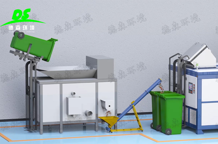 當(dāng)前,我國的生活垃圾分類項(xiàng)目已經(jīng)進(jìn)行了試點(diǎn)運(yùn)行。為了更好地配合垃圾分類,推進(jìn)我國城市化建設(shè),如何及時(shí)有效地處理餐廚垃圾成為亟需解決的問題。餐廚垃圾已經(jīng)嚴(yán)重影響到人們的生活和社會(huì)環(huán)境。目前,大型垃圾處理設(shè)備已經(jīng)得到實(shí)際應(yīng)用,但是大部分的餐廚垃圾產(chǎn)地與大型垃圾處理設(shè)備相距較遠(yuǎn),并且大型餐廚垃圾處理生產(chǎn)線流程復(fù)雜,設(shè)備占地面積也較大,工藝繁瑣,生產(chǎn)周期長,資金投入較多,成本太大,而且集中收集處理的時(shí)候需要運(yùn)轉(zhuǎn)的距離也比較長,也會(huì)增加運(yùn)輸風(fēng)險(xiǎn),因此餐廚垃圾處理成套設(shè)備并不是越大越好。